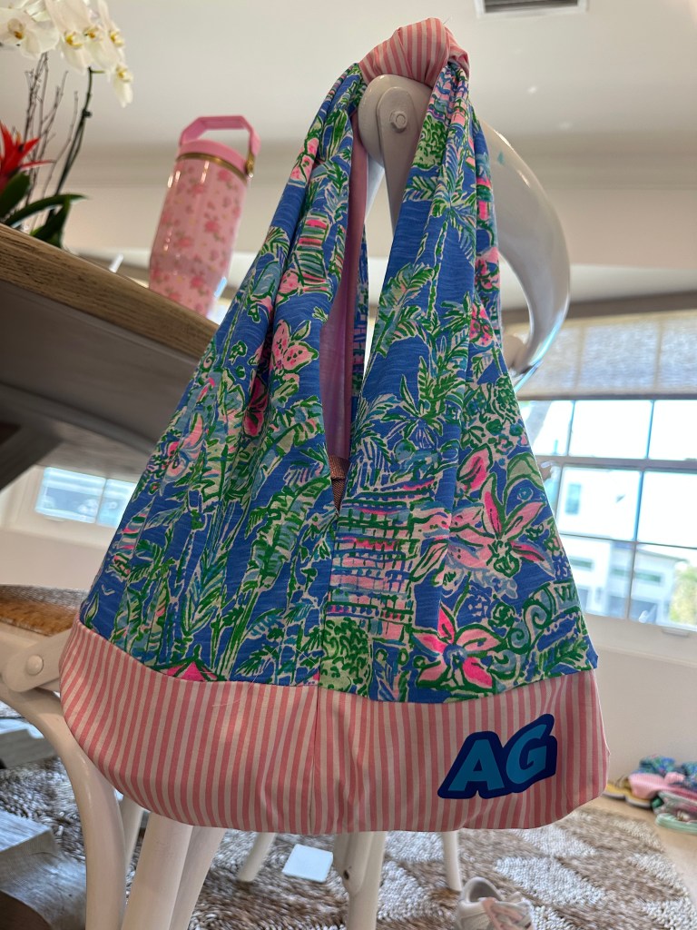 It is really hard to think about spring break right now as Tampa is having the most windy, rainy and cold day today! But…spring break is right around the corner! This month’s sewing party we will be stitching up a wet bathing suit bag! The outer fabric is Lily Pulitzer and the inner fabric is a pink and white cabana stripe. We will use iron on fabric vinyl to turn the cabana stripe into waterproof fabric to help keep everything else in your bag dry. We will also install a snap to make it easy for you to attach it to the side of a larger beach bag. If time allows we will stitch up a chapstick holder to match our bags.